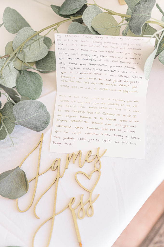 Guess what? There’s no secret sauce or perfect way to write your letter. There’s only the words, the stories, the promises, and the memories that you personalize and tell from your hearts. Not only is it an amazing keepsake once the big day is over, but it’s also something that reminds them of you and what this journey is all about. We tell our couples all the time to keep the main thing the main thing. And exchanging letters is a beautiful way to get your hearts and minds focused on what this day is really about.